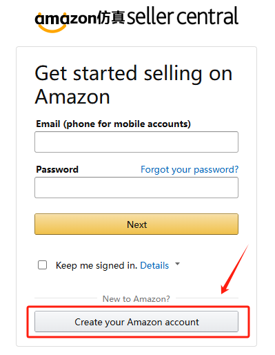 4.进入卖家账号登录页面后,点击下方的“Create your Amazon account”,注册卖家账户,如图4所示。