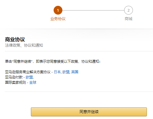 9.商业协议签订,浏览商业协议,浏览完成后点击“同意并继续”,如图9所示。