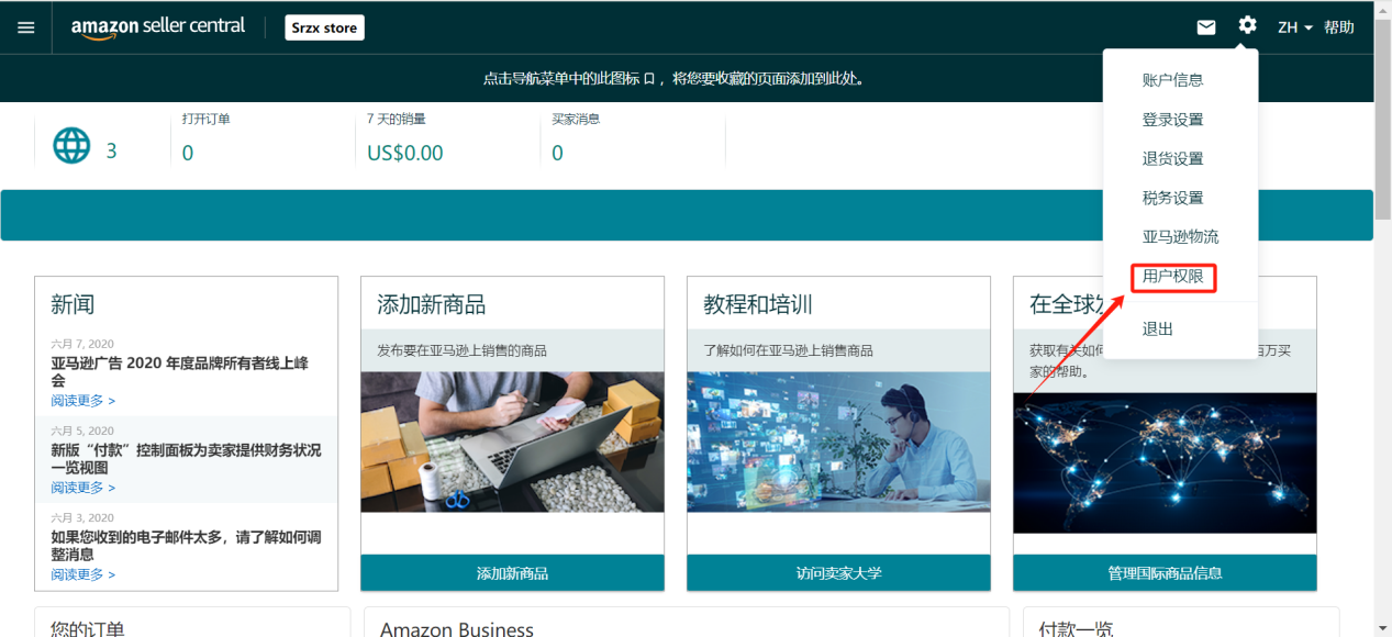 12.进入亚马逊实训平台后台,在设置中找到“用户权限”模块,如图12所示。