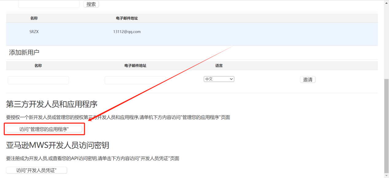 13.在用户权限模块中,找到“第三方开发人员和应用程序”并点击“访问‘管理您的应用程序’”,如图13所示。