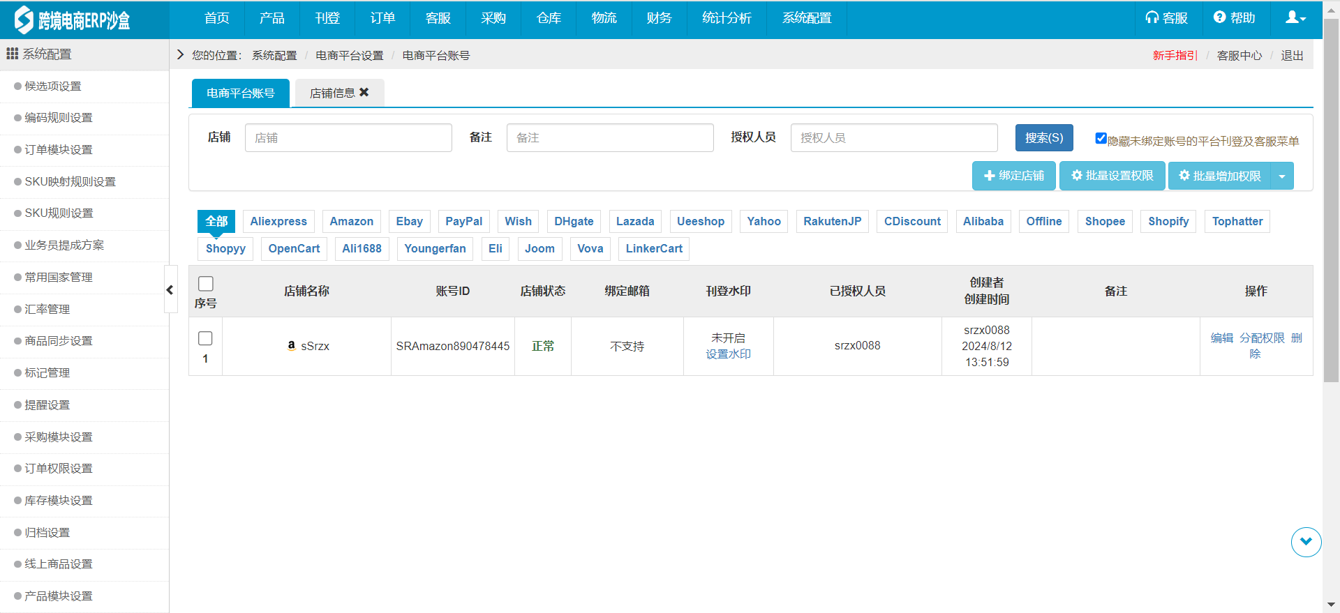 17.完成绑定的店铺可在“电商平台账号”页面查看与编辑信息,如图22所示。